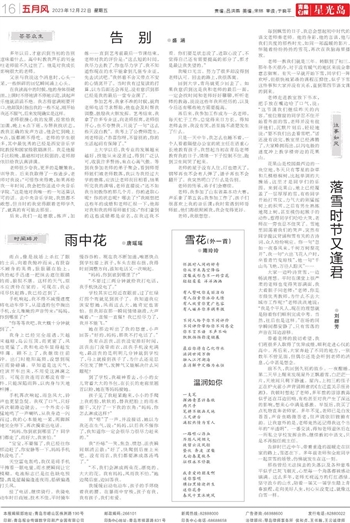 告辞时已近中午,带着重逢的温暖走在回家的路上,雪还在下。多年前老师和全班同学一起赏雪的场景,仿佛就发生在这一刻。