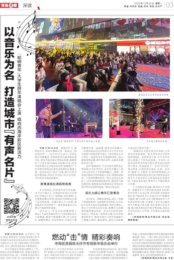 早报12月24日讯 璀璨的灯光、激昂的音乐、欢快的舞蹈以及一阵高过一阵的欢呼声……12月23日至24日,由青岛报业传媒集团、共青团青岛西海岸新区委员会、青岛西海岸新区灵珠山街道、蛤蜊青年人才俱乐部(GALA CLUB)主办;青岛早报和碧乐汇灵珠店承办的“蛤蜊青年”大学生跨年演唱会在青岛灵珠碧乐汇隆重上演。活动旨在以“音乐”为媒,吸引年轻才俊齐聚岛城,用音乐书写自己的人生华章,开启青岛文旅的新篇章。