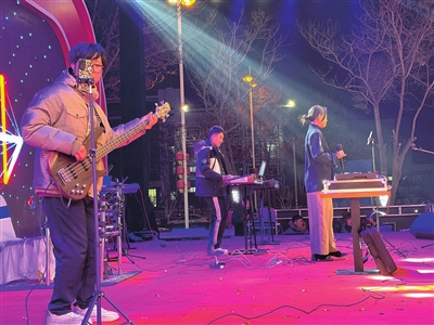 乐队在“蛤蜊青年”大学生跨年演唱会上表演。