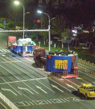为确保这台庞然大物的安全运抵,针对复杂的运输状况,项目部成立运输保障专班,项目部负责人亲自挂帅,与交通管理部门、公路运营部门形成联动,对运输线路和沿线限高限宽情况多次进行实地勘察,将运输方案各个环节反复推演,历经数次调整敲定最优方案。