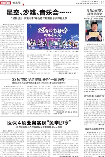 早报12月27日讯 12月31日晚8时到12时,“望星崂山·浪漫相牵”崂山跨年星空音乐会将在流清湾畔举行。来自青岛的极光乐队、TOP乐队、老街乐队、蓝点乐队将为广大市民和游客带来一场极具浪漫气息的跨年音乐会。本次活动为纯公益演出,无需购买门票。
