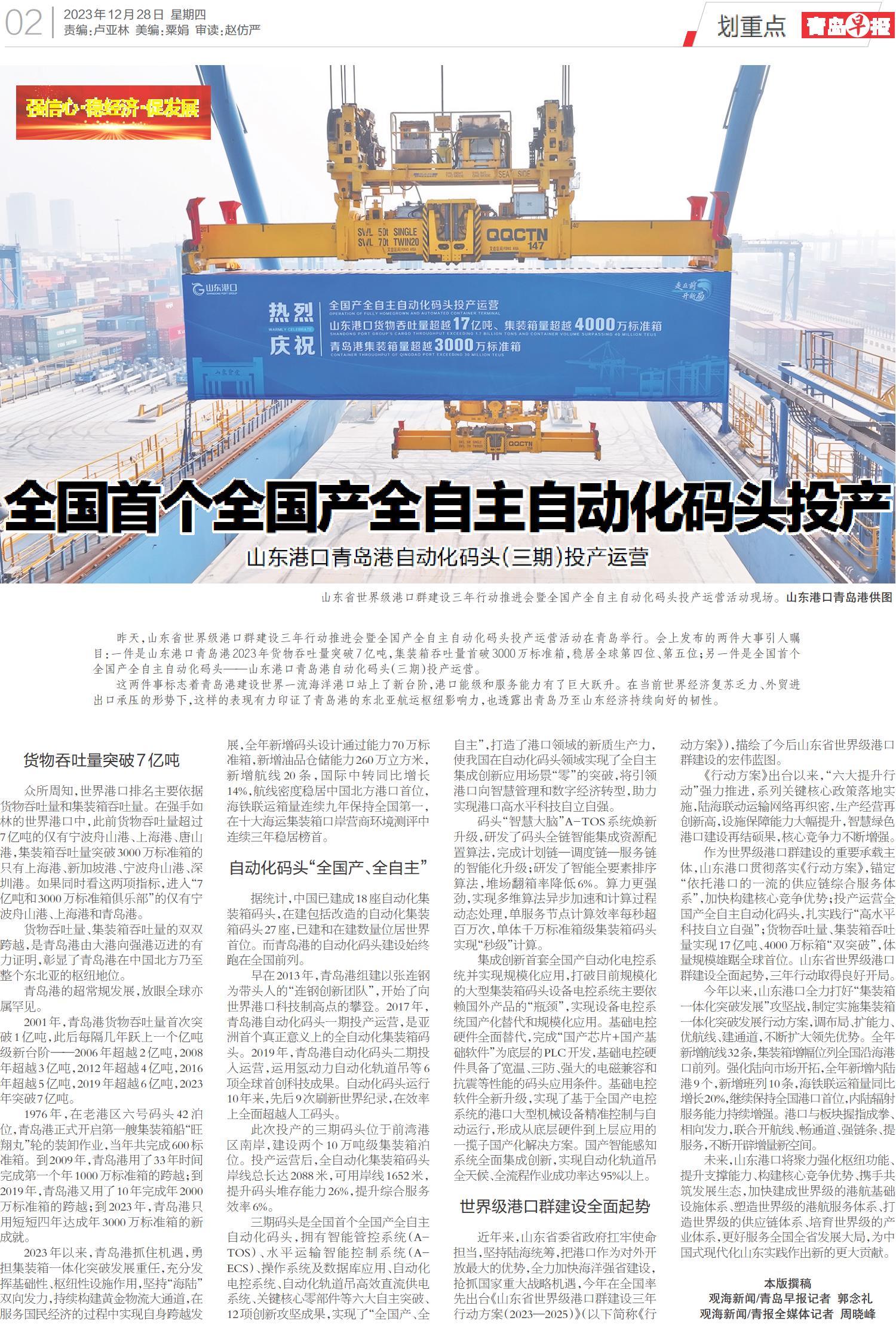 全国首个全国产全自主自动化码头投产