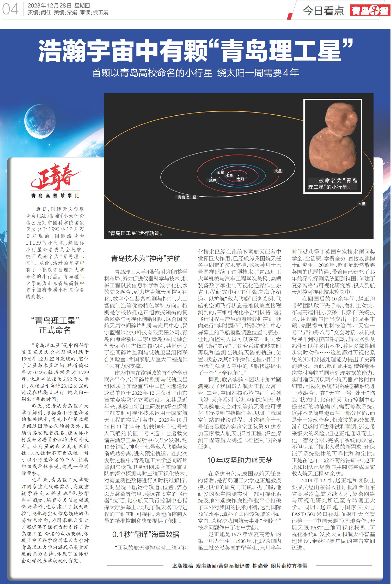 浩瀚宇宙中有颗“青岛理工星”