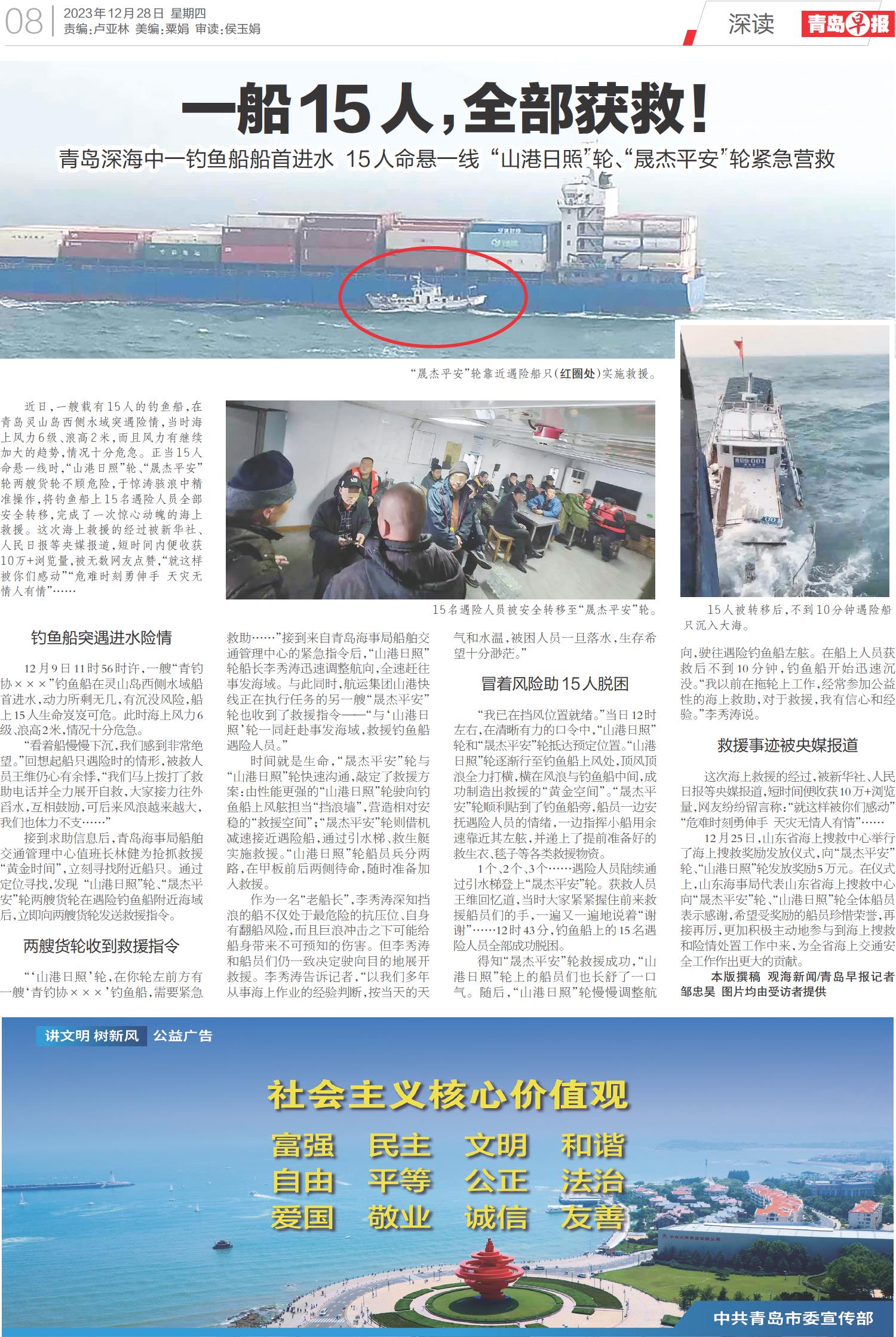 一船15人,全部获救!