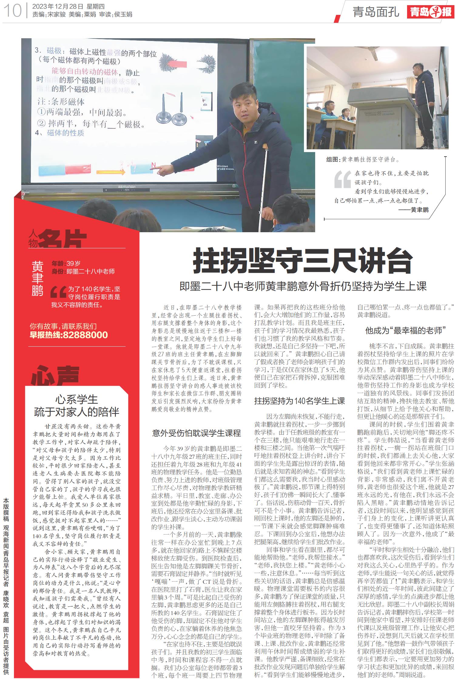 拄拐坚守三尺讲台