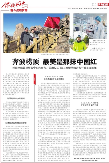 “元旦值班看似辛苦,但能够和大家一块儿努力,一起在大陆海岸线最高峰上升国旗,对我们来说很有纪念意义。我们共同的新年愿望是让游客们高高兴兴、平平安安地来崂山巨峰欣赏美景。”韩学丽说。