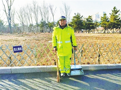 左图:崂山环卫工人张广秋元旦坚守岗位。