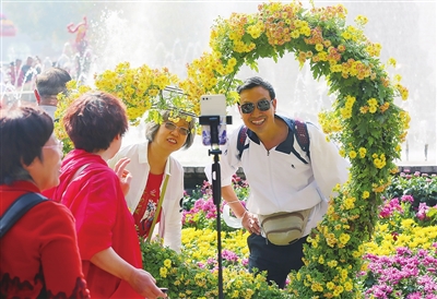 10月21日 青岛市第39届菊展举行,吸引市民游客赏菊拍照。