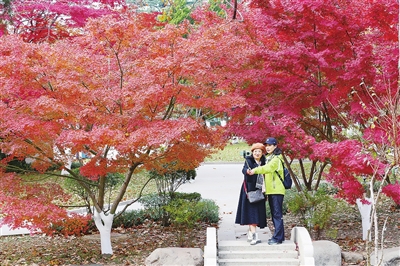 12月1日 中山公园枫林涧迎来观赏红叶的最佳时期,鸡爪槭、五角枫等红叶鲜艳如火,“枫”景如画。