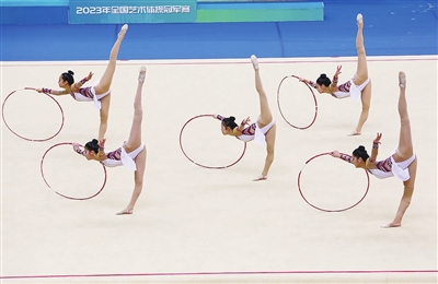 11月21日 2023年全国艺术体操冠军赛在青岛体育中心体育馆开幕,来自全国的14支代表队、120余名运动员在23个项目上展开激烈比拼,尽情展示高超技艺与艺术体操的独特魅力。