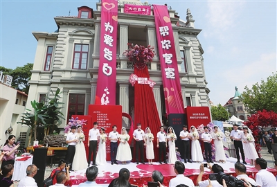 8月22日 “海誓山盟 爱在七夕”——2023年青岛市新时代青年集体婚礼活动在市南区浙江路26号安娜别墅举行。
