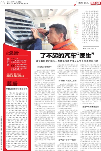 从一名按固定维保流程做维修的汽车维修工人,成长为具有全面扎实汽修功底的汽修技工……多年来,青岛城运汽车服务集团江西路保修厂检查员郭衍鹏在干中学、学中干,汽修技术得到显著提高。如今,城运控股集团开展的汽车维修工类自主评价将技术进阶体系搬到“家门口”,郭衍鹏借势“晋级”,取得了高级技师技能等级证书,成为岛城汽车维修领域的技术能手。
