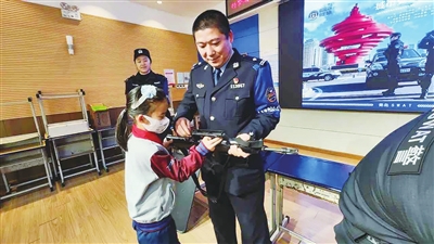 民警和小学生在活动中。