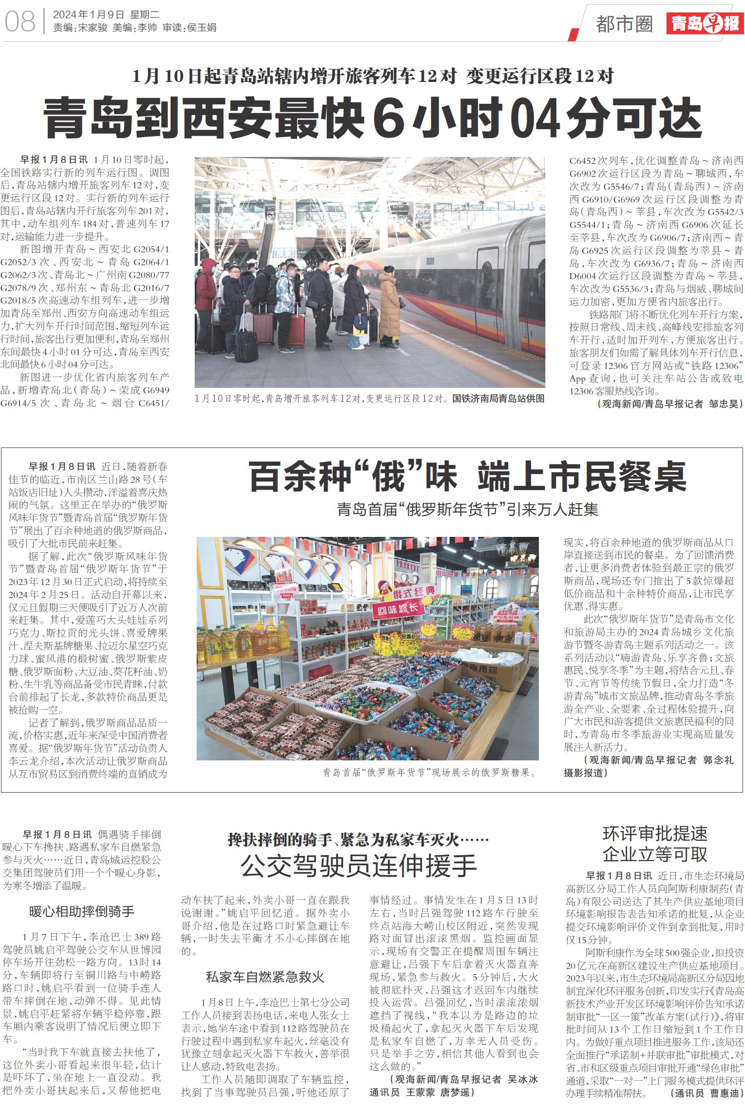 据了解,此次“俄罗斯风味年货节”暨青岛首届“俄罗斯年货节”于2023年12月30日正式启动,将持续至2024年2月25日。活动自开幕以来,仅元旦假期三天便吸引了近万人次前来赶集。其中,爱莲巧大头娃娃系列巧克力、斯拉贡的光头饼、喜爱牌果汁、涅夫斯基牌糖果、拉迈尔星空巧克力球、蜜风港的椴树蜜、俄罗斯紫皮糖、俄罗斯面粉、大豆油、葵花籽油、奶粉、生牛乳等商品备受市民青睐,付款台前排起了长龙,多款特价商品更是被抢购一空。