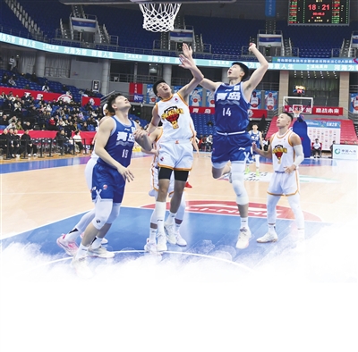 青岛队球员(蓝衣)在比赛中。 观海新闻/青报全媒体记者 王雷 摄