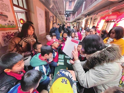 日前,青岛定陶路小学组织二年级学生开展冬季历史城区研学实践暨期末无纸化测评活动,通过流动式研学体验,培养学生热爱家乡、热爱祖国的情感。城市记忆馆收藏着城市文化的灵魂。为了解青岛的城市历史,同学们化身“家乡宣传大使”,为家乡代言,讲好家乡故事,让世界听到青岛声音。在水龙池子广场,同学们利用广场空地开展了中华传统体育特色项目——投壶,体验没有手机等电子产品的“街里”体育活动。观海新闻/青岛早报记者 王彤 摄
