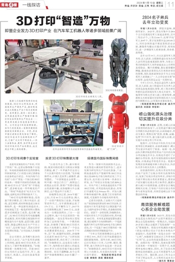 随着人们低碳环保意识的逐渐提高,3D打印以更低成本、更高效率生产绿色产品,推动制造业由大规模生产向个性化定制转变。在即墨区,就有一家从事工业级高速连续生产型碳纤维3D打印设备研发和生产的企业——青岛英龙联合智造装备有限公司。公司经过9年的深耕探索,如今已经发展成一家颇有建树的高新技术新锐企业。日前,青岛早报记者探访英龙智造了解到,3D打印技术作为战略性新兴产业,已被广泛应用于制造业,一些工业服务业、教育、医疗等企业对3D打印技术及产品的需求,也呈现出不断上涨的趋势。
