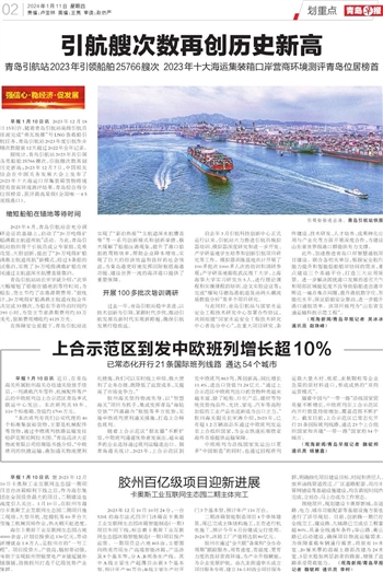 随着上合示范区“朋友圈”不断扩容,中欧班列通道优势愈发突出,越来越多的企业选择通过班列运输进出口。据青岛海关统计,2023年,上合示范区到发中欧班列863列,再创新高,同比增长11.4%,进出口货值71.24亿元。“通过上合示范区中欧班列出口的货物种类越来越丰富,除了轮胎、日化产品、建材等传统优势商品外,光伏、家电、汽车等高附加值的工业产品也逐渐成为出口主力。”胶州海关副关长宋涛介绍,2023年,已有超1.2万辆商品车通过中欧班列发运至上合组织国家,为企业快速拓展欧亚海外市场提供运输保障。