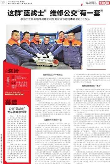 公交车运行过程中,驾驶员能够准时准点发车,离不开背后维修人员的努力。他们或顶着热浪钻进发动机舱,或冒着严寒跳进维修地沟,在艰苦的环境下用心做事,用创新创效展示了新时代的工匠风采、工匠技艺和工匠文化。在青岛城运控股公交集团李沧巴士公司里,有这样一群“蓝战士”,他们凝心聚力,“抱团”冲锋攻难关;聚焦创新,维修焕发新活力;关注成本,助力企业降本增效,他们就是李沧巴士“蓝战士”创新组。自成立以来,创新组采用低成本的新技术维修了57个起动机、95个发电机、25个门泵和31个气室,为企业节约成本差价近32万元。
