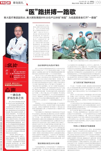 要让患者在家门口放心看病,就要有好的医院和医生。为此,青大附院不断探索,让海南医疗事业走向了“蝶变”。2021年7月21日,陵水县人民医院成为青大附院海南分院,并于2022年1月6日加入青岛大学医疗集团,从“一家县医院”到“一家医疗技术过硬的三级医院”,这一切的变化要从青大医疗集团副院长、青大附院胃肠外科主任卢云教授被任命为青大附院海南分院院长说起。近日,记者来到青岛大学附属医院市南院区名医堂对卢云进行了专访,让我们从他的故事中感受医者担当,纵观医学发展。