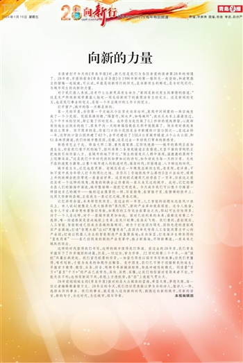 当读者打开今天的《青岛早报》时,就已经是我们与各位亲爱的读者第28年的相遇了。28年前,早报的前身《青岛生活导报》与1996年新的第一缕阳光一起登场,和凌寒傲立的腊梅一起绽放,可以说,早报是向新而行的阳光,是向新而生的鲜花,是与时代同行,与城市同生的向新的力量。