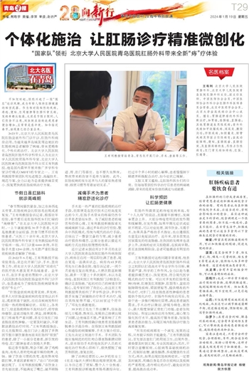 自2022年6月起,王有利教授开始常驻青岛,常态化开展门诊、手术、查房等工作,将北京大学人民医院“同质化”的医疗技术惠及更多岛城患者。去年11月,在许多患者的期盼中,北京大学人民医院青岛医院肛肠盆底外科门诊开诊,也迅速成为了接收肛肠疾病疑难杂症的“专业户”。
