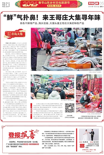 早报1月19日讯 1月19日,农历腊月初九,恰逢王哥庄大集,青岛早报记者来到大集上,体验这个“鲜”气扑鼻的大集,带你寻年味赶大集。临近春节,王哥庄大集上各色海鲜、干果、水果琳琅满目,前来购置年货的市民络绎不绝。