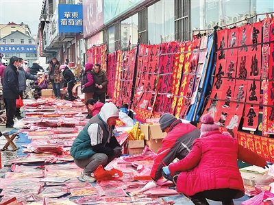 大集上售卖对联的摊位。