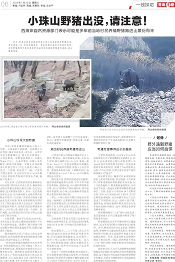 那么,小珠山是否长期以来就存在野猪这一物种呢?记者联系到青岛西海岸新区自然资源规划局,该局森林资源保护监督科工作人员耿志强告诉记者,青岛本土没有野猪,近几年在小珠山上发现的野猪极有可能是村民养殖的野猪跑进山繁衍而来的。