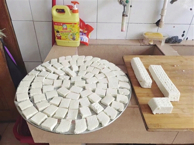 衣玉洁说,老一辈村民凭借着对生活的勤劳与热爱,不知不觉中创造了这种加工方法,做出了和奶酪颜色相同,和真正的豆腐十分相似的山羊奶豆腐,久而久之,这种技艺在一代代热爱生活的北宅人中流传下来。