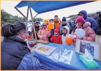 活动现场邀请90后“最甜”非遗糖画手艺人高光耀、西海岸新区剪纸艺术家薛娜,现场创作与海鸥有关的非遗作品,让市民和游客更直观地认识非遗、感受非遗魅力所在。高光耀给孩子们绘制了栩栩如生的海鸥糖画,只见他拿起一把小勺子,从锅里舀起刚融化的糖浆,在石板上来回勾勒,短短几十秒的时间,一只生动的海鸥就展现在案板上。小朋友们拿着金黄色透明的海鸥糖画,满脸欢喜。“为了贴合主题,我现场以海鸥形象为主,将流行元素融入作品。”高光耀说,这也是他糖画制作的一大特色。“希望通过海鸥文化节宣传我们的非遗项目,把我们的传统手工艺分享给大家,让更多人在看海鸥的同时,感受这些传统文化的魅力。”高光耀说。