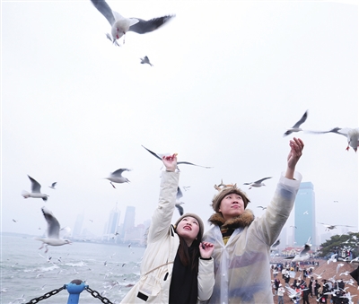 “我很喜欢动物,听说青岛冬天有很多海鸥,就想来青岛亲眼看一看。”小虎告诉记者,自己生活在森林里,到处都是高大的树木,因此对大海有不一样的憧憬。站在人群里,小虎和朋友们一起饶有兴趣地将食物高高举起,喂起了海鸥。波光粼粼的海面上,成群结队的海鸥在低空盘旋、翩翩飞舞,眼前人鸥和谐共生的画面让小虎感到十分震撼,他赶紧拿出相机将这美好的一刻记录了下来。