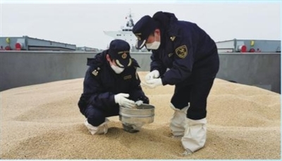 关员告诉记者,进口的船运散装粮食动辄超过万吨,进行查验时,关员必须登上货轮进入船舱,开展现场检疫并且多点取样。面对“麦山豆海”,他们需要深一脚浅一脚地登上“麦山”蹚过“豆海”,一丝不苟地完成过筛检疫和取样操作。