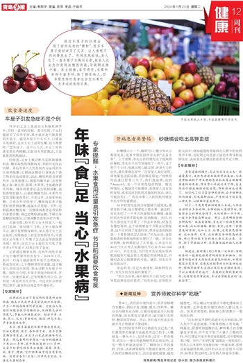 砂糖橘小小一个,酸甜可口,糖分和水分都很充足,是春节期间招待亲友的“必备水果”。上个星期,李先生的好朋友送了他两箱砂糖橘,李先生不加节制地吃了一两斤,过了两三个小时,他就出现心跳过缓、浑身无力的症状,最后晕倒在家中。还好家人及时发现,将他紧急送医抢救,目前体征稳定。“他维持性血透已经有三年了,我们查血钾,高到7.8mmol/L,是一个非常危险的数值。像这种情况,心跳随时可能骤停,如果家人没有及时发现,或者是送到医院没能及时救治,病人可能会死亡。” 青岛市第三人民医院肾病老年医学科张盛霞说。