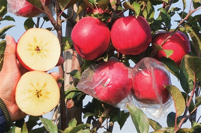 “福星”苹果红彤彤的外表,让人看着就有食欲。张玉刚介绍,“这个品种单果重为238g,果实近圆形,果面鲜红色,相比其它苹果更红更圆。”高颜值的“福星”苹果口感如何?张玉刚表示:“‘福星’口感脆甜,平均糖度在16度以上。而同为晚熟品种,‘富士’的平均糖度在13度至15度,因此‘福星’苹果口感更甜。”