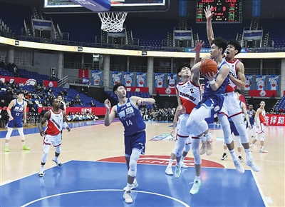 青岛国信水产男篮在比赛中。观海新闻/青报全媒体记者 王雷 摄