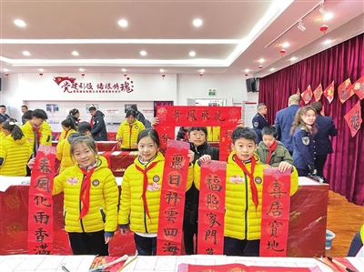 活动当天,伴随着欢快的音乐,书法家们执笔写下一副副寓意吉祥的对联和风格不同的书法作品,同学们也饱含热情,写下一张张满载着真诚祝愿的“福”字。随后,书法家们和学生们走进车厢,将自己的作品赠与一线驾驶员,为他们送去新年祝福和问候。