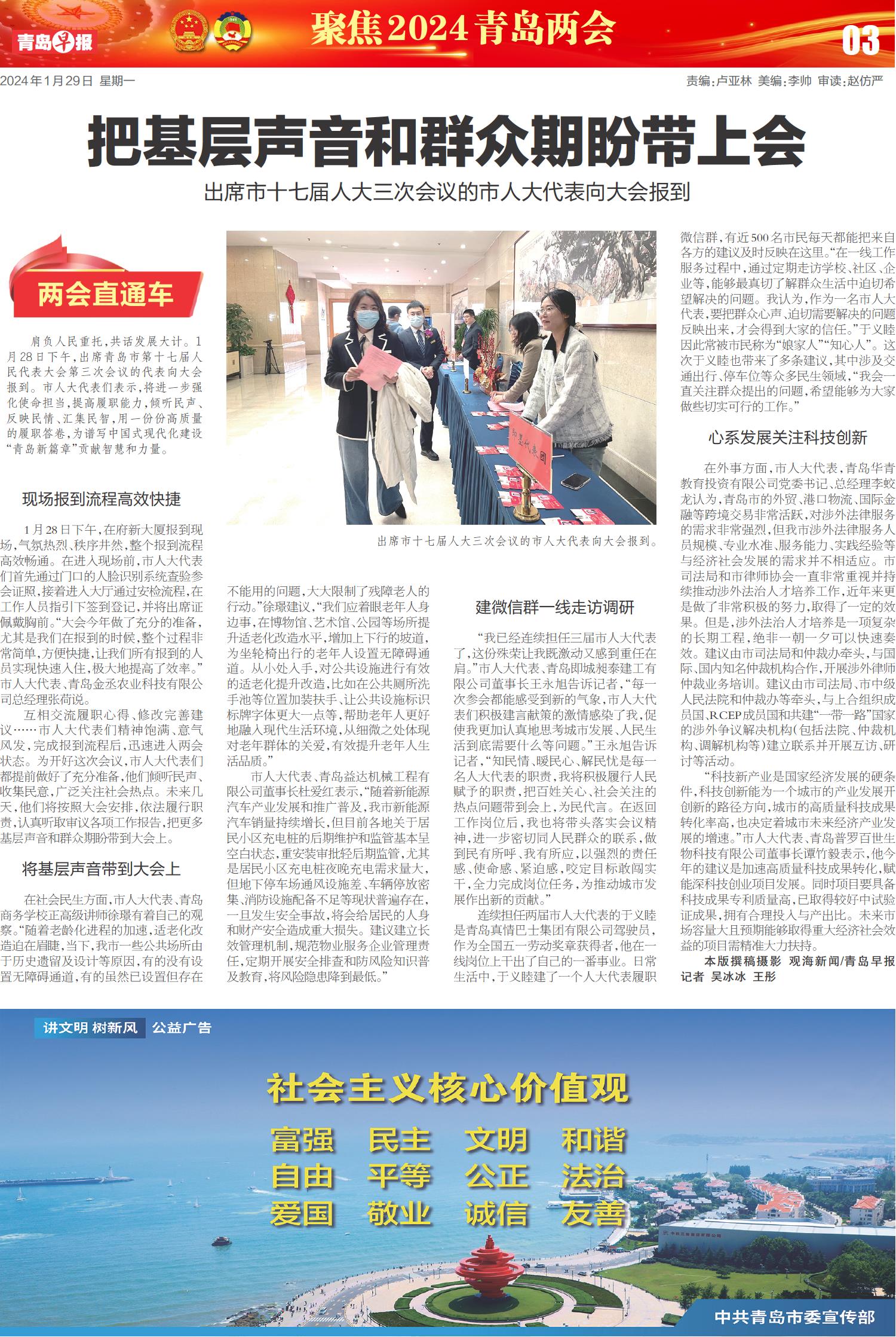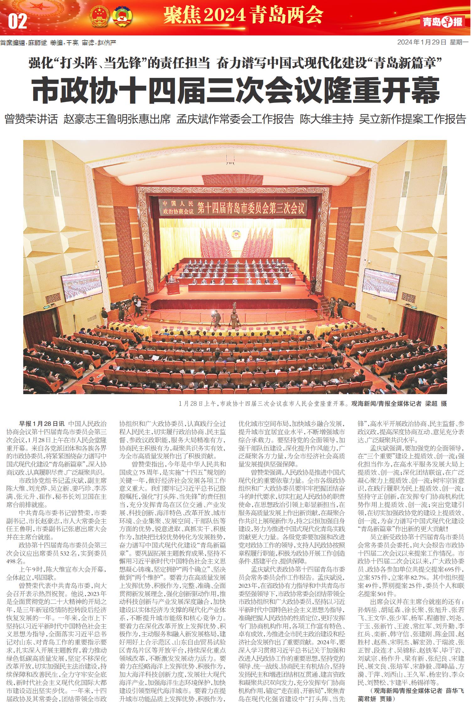 A01 头版 A02 聚焦2024青岛两会 A03 聚焦2024青岛两会 A04 聚焦2024青岛两会 A05 聚焦2024青岛两会 A06 聚焦2024青岛两会 A07 聚焦2024青岛两会 A08 聚焦2024青岛两会 A09 聚焦2024青岛两会 A10 走在前开新局 打头阵当先锋 A12 走在前开新局 打头阵当先锋 A13 发布 A14 今日看点 A16 身边事 A17 文体 A18 瞰青岛周刊 A19 新气象