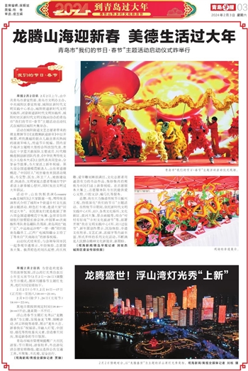 2月2日傍晚时分,以“龙腾盛世”为主题的浮山湾灯光秀亮相。观海新闻/青报全媒体记者 刘栋 摄