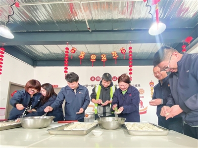 2月2日是农历腊月廿三,是传统节日“小年”。下午,青岛地铁6号线弱电项目中铁电气化局职工食堂内,不当班的职工们开始贴春联、包饺子。“我们的建设者来自五湖四海,大家口味各不相同,我们就准备了4种馅,白菜肉、大葱肉、韭菜肉和韭菜鸡蛋。”彭留邦说,虽然有些包得“不好看”,但大家吃起来肯定很香。 (观海新闻/青岛早报记者 魏铌邦 摄影报道)