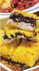 跟大米相比,大黄米更难蒸熟,所以蒸制时,掐准时间是非常重要的。如果蒸的时间不够,年糕里面难熟透,蒸出来的年糕会很硬。但如果蒸的时间过长,出锅的年糕就会过软,影响口感和美观。乔阿姨告诉我们,因为各家制作的年糕厚度不一,火力大小不一,所以很难说得非常绝对。她有一个测试年糕是否熟透的好方法,用竹签或筷子向年糕里扎一下,扎到底,如果扎进去触感软糯,拿出来时上面粘有年糕,则证明年糕已熟透了。刚刚蒸熟的年糕黏糯可口,可以立即上桌。同时,年糕也可以保存较长时间,把蒸好的年糕冷却后放入冰箱冷冻,想吃的时候拿出来切片,油炸或复蒸都可以。蘸上白糖或红糖,把年糕送入嘴中,年味就出来了。