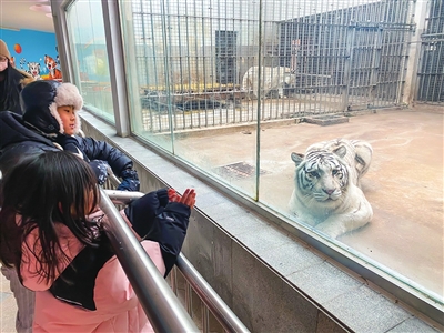 动物园虎山的户外展区一直开放,但内参观厅已有13年没有开放。因为户外展区有限,老虎们只能轮流到外面“上班”,所以游客们一次只能看到两只老虎,而内参观厅开放后,游客们一次就可以看到所有老虎,并且是隔着玻璃近距离观察。
