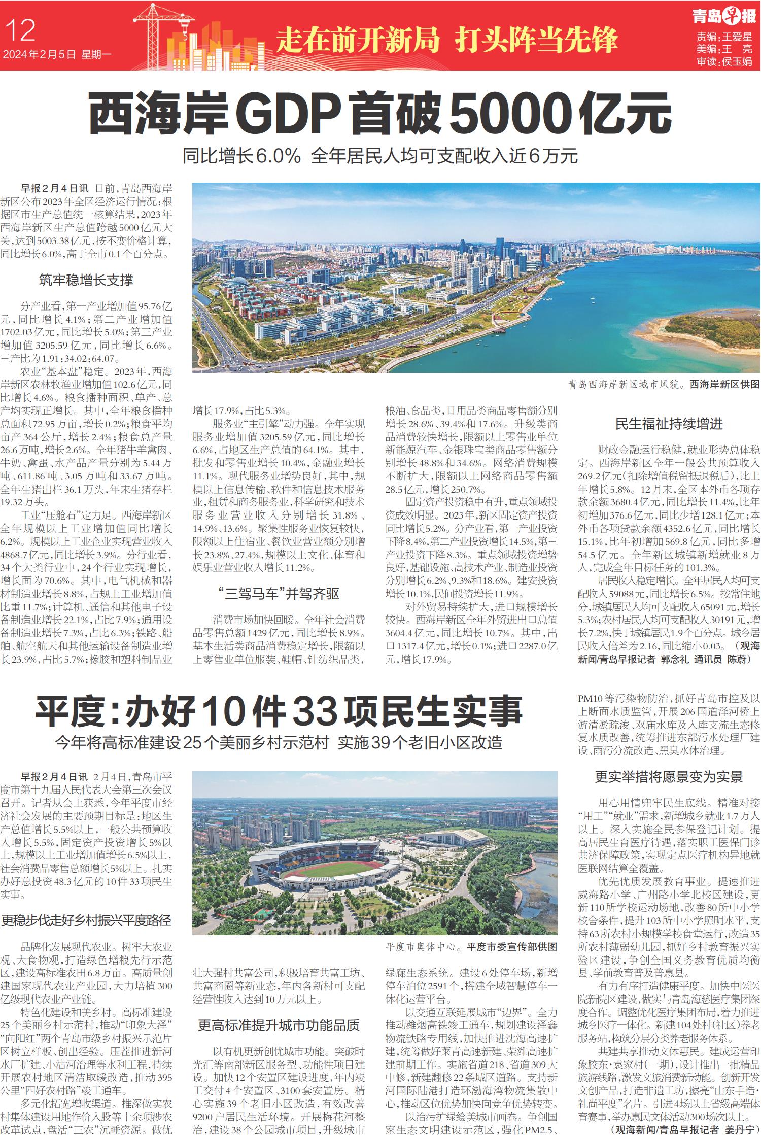 A01 头版 A02 大雪袭城 A04 到青岛过大年 A06 到青岛过大年 A07 到青岛过大年 A08 加快城市更新建设 提升市民生活品质 A09 加快城市更新建设 提升市民生活品质 A10 走在前开新局 打头阵当先锋 A11 走在前开新局 打头阵当先锋 A12 走在前开新局 打头阵当先锋 A13 身边事 A14 文娱 A15 瞰青岛周刊 A16 新气象