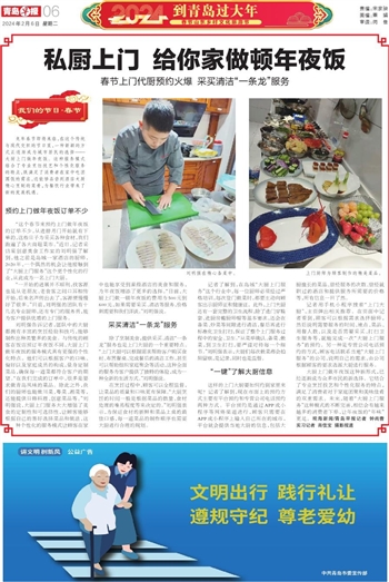 大厨上门做年夜饭这种新形式,已经逐渐成为众多市民的新选择。它结合了专业烹饪技艺和个性化服务的特点,满足了消费者对于家庭团聚和美味佳肴的双重需求。未来,随着“大厨上门服务”这种模式的不断完善,相信会有越来越多的消费者下单,让年夜饭的“年味”更足。观海新闻/青岛早报记者 钟尚蕾 实习记者 肖佳宝 摄影报道