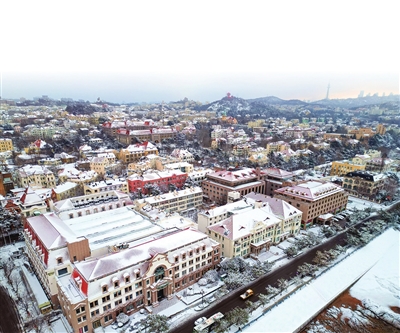 青岛西部城区错落有致的建筑被雪点缀得更有韵味。 观海新闻/青岛早报首席记者 孙启孟 摄