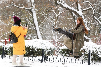 2月5日上午,市民在八大关景区内赏雪景。 观海新闻/青岛早报首席记者 孙启孟 摄