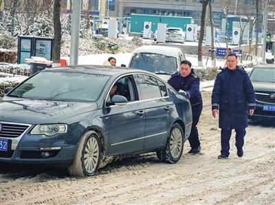 5日凌晨5时,市南巴士第五分公司清扫场站积雪时,看到场站外一酒店出口处停着一辆私家车,因路面积雪湿滑,且酒店出口处于上坡位置,私家车动弹不得。“我们在停车场铲除积雪,从院子里就看到有辆私家车在酒店出口位置停着,多次尝试启动车辆都没能上坡,应该是因积雪打滑上不来了。”工作人员韩卫强回忆,见此情景,场站内的工作人员立即拿着扫帚、铲雪工具一起上前帮忙。大家用扫帚以最快的速度将私家车4个轮子周围的积雪清除干净,另有两名工作人员在车辆后面推车,最终将被困私家车顺利推到安全地带。而类似这种协助私家车脱困的暖心事在十几个小时内就发生了150余次。此外,首班公交车发出后,城运集团的志愿者们深入客流量较大站点开展志愿服务,协助乘客有序安全乘车。“您好,请注意脚下台阶,小心地滑。”在东韩中路麦岛路车站,志愿者们一边清理站台积雪,一边贴心提醒乘客注意乘车安全,同时搀扶特需乘客上下车,耐心解答乘客疑问。