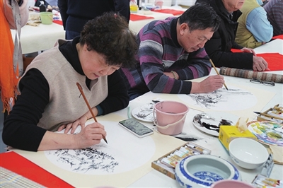 翰墨丹青迎新春,纸墨书香送祝福。1月25日上午,青岛市老年大学书画院举行迎新春笔会,老书画家及部分教师学员代表现场挥毫泼墨,创作福字、春联、绘画作品两百余幅,大家欢聚一堂,喜迎龙年春节的到来。活动现场,书画家和师生们蘸笔挥毫,以书会友,以画传情,把对美好生活的向往与追求和新年美好祝愿,融入在笔尖,展现于画卷,创作出一幅幅精美的作品,写下一幅幅寓意吉祥、承载美好的新春祝福。通讯员 郭松 摄