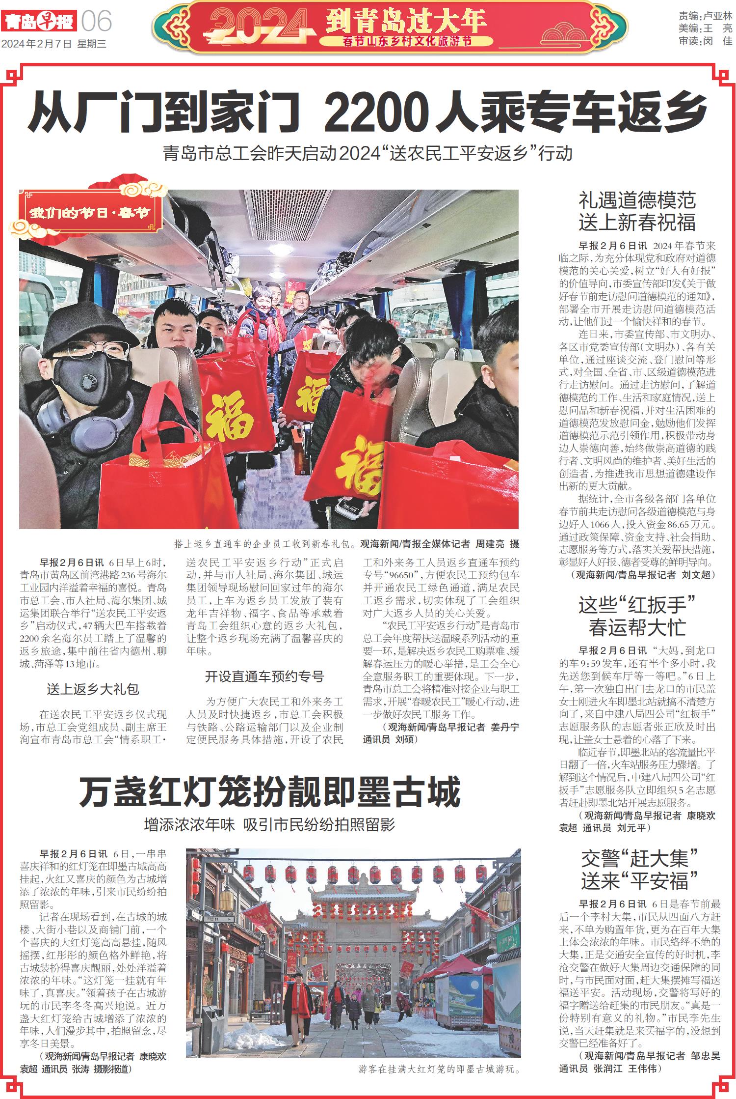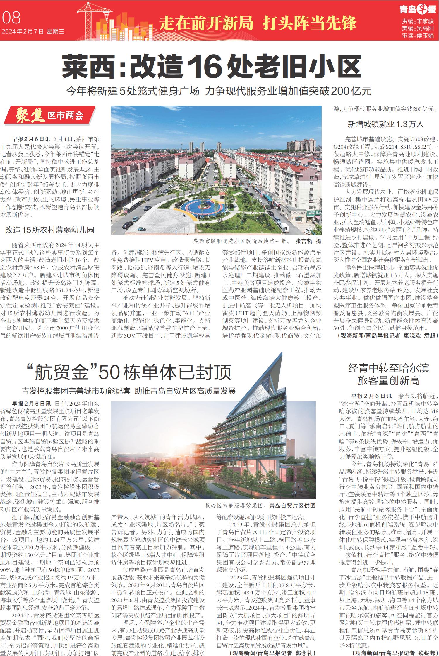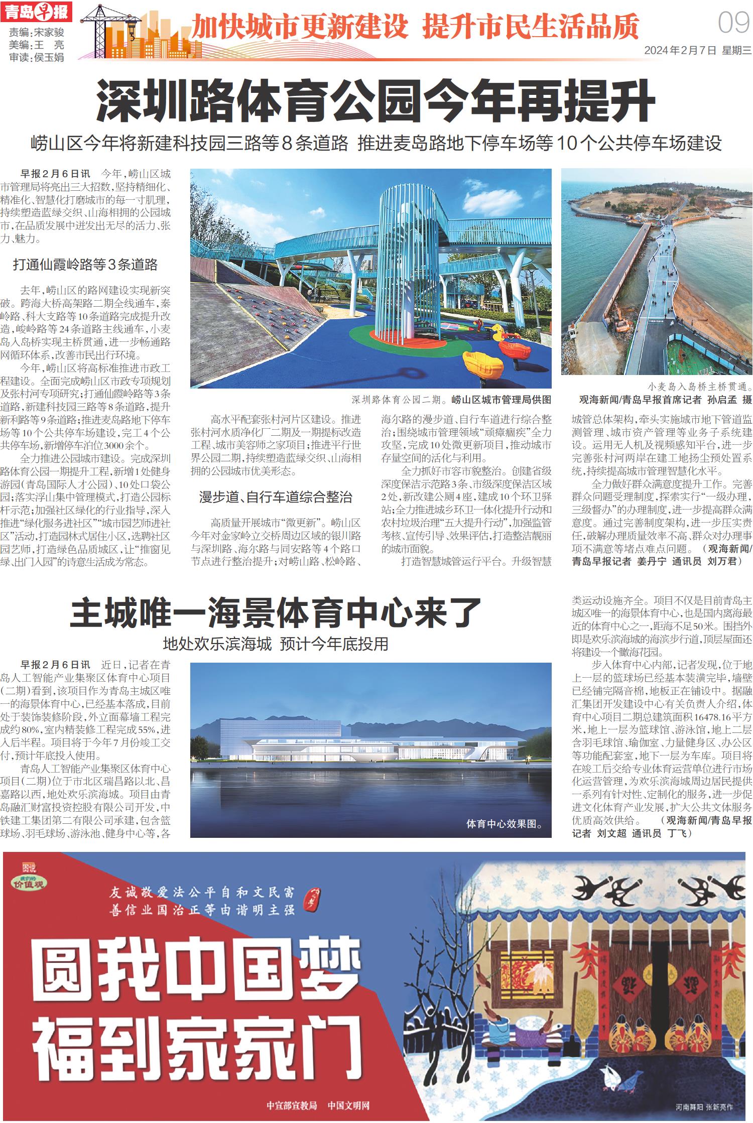 A01 头版 A02 划重点 A03 大爱青岛 A04 2024到青岛过大年 A05 2024到青岛过大年 A06 2024到青岛过大年 A07 新春走基层 A08 走在前开新局 打头阵当先锋 A09 加快城市更新建设 提升市民生活品质 A10 蹲点报告 A12 都市圈 A13 体育风周刊 A14 观赛台 A15 教育周刊 A16 校园