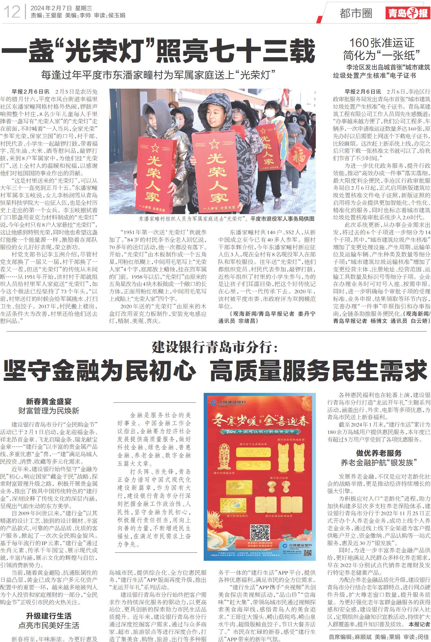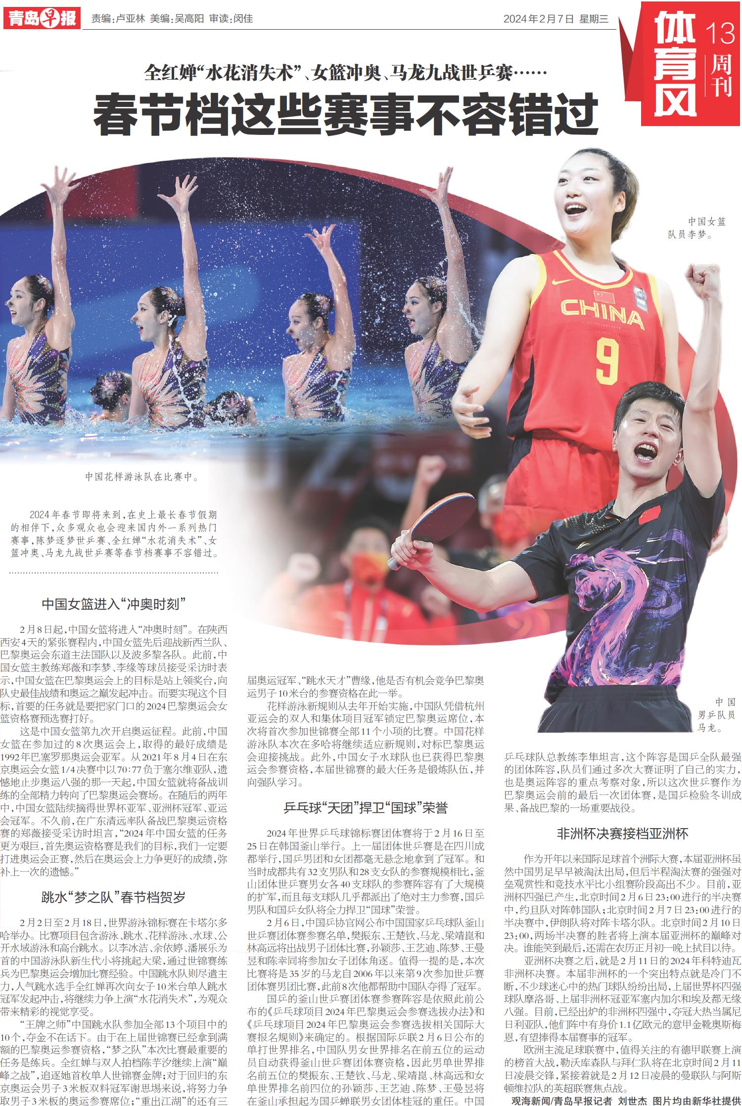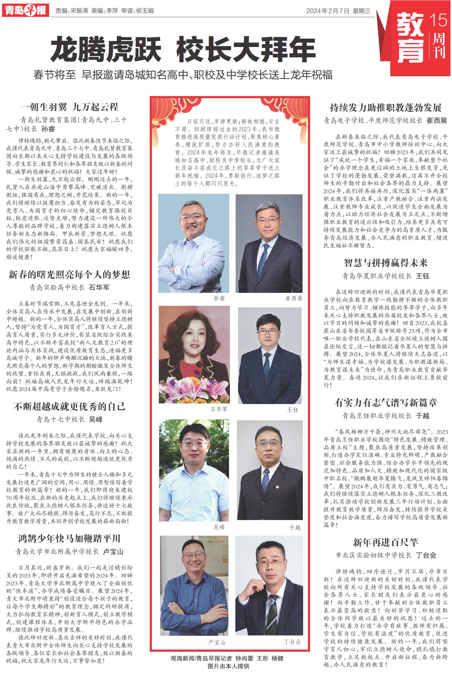 A01 头版 A02 划重点 A03 大爱青岛 A04 2024到青岛过大年 A05 2024到青岛过大年 A06 2024到青岛过大年 A07 新春走基层 A08 走在前开新局 打头阵当先锋 A09 加快城市更新建设 提升市民生活品质 A10 蹲点报告 A12 都市圈 A13 体育风周刊 A14 观赛台 A15 教育周刊 A16 校园